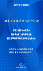 记者从6月17日国务院国资委举行的专题推进会上获悉,截至2025年一季度末,各中央企业、各地国有企业改革深化提升行动重点改革任务平均完成率已超过80%。